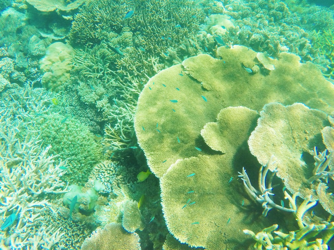 I also had the most adventurous experience as I was the only person on my tour to see a grey reef shark. I was among the first people out in the water at our first reef stop and out not too far from the boat, when all of a sudden out of the corner of my left eye I saw something moving. It was a shark. It swam in front of my came back past me and circled around again off on my right side. I froze and just watched it not sure what to do. Just as quickly as it appeared, it disappeared. I was later told by the crew that I was very lucky to have seen the shark, as it is rare to see them in snorkeling groups. I don’t really consider lucky, as I think it was quite possibly the scariest thing I have ever witnessed. After that moment of panic the rest of the day was far more relaxed.